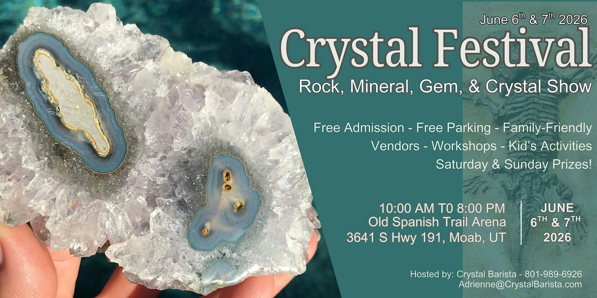 The Crystal Festival – A Rock, Mineral, Gem, & Crystal Show is coming to Moab, Utah on June 6th & 7th, bringing a full weekend of discovery, creativity, and hands-on fun for the whole family.