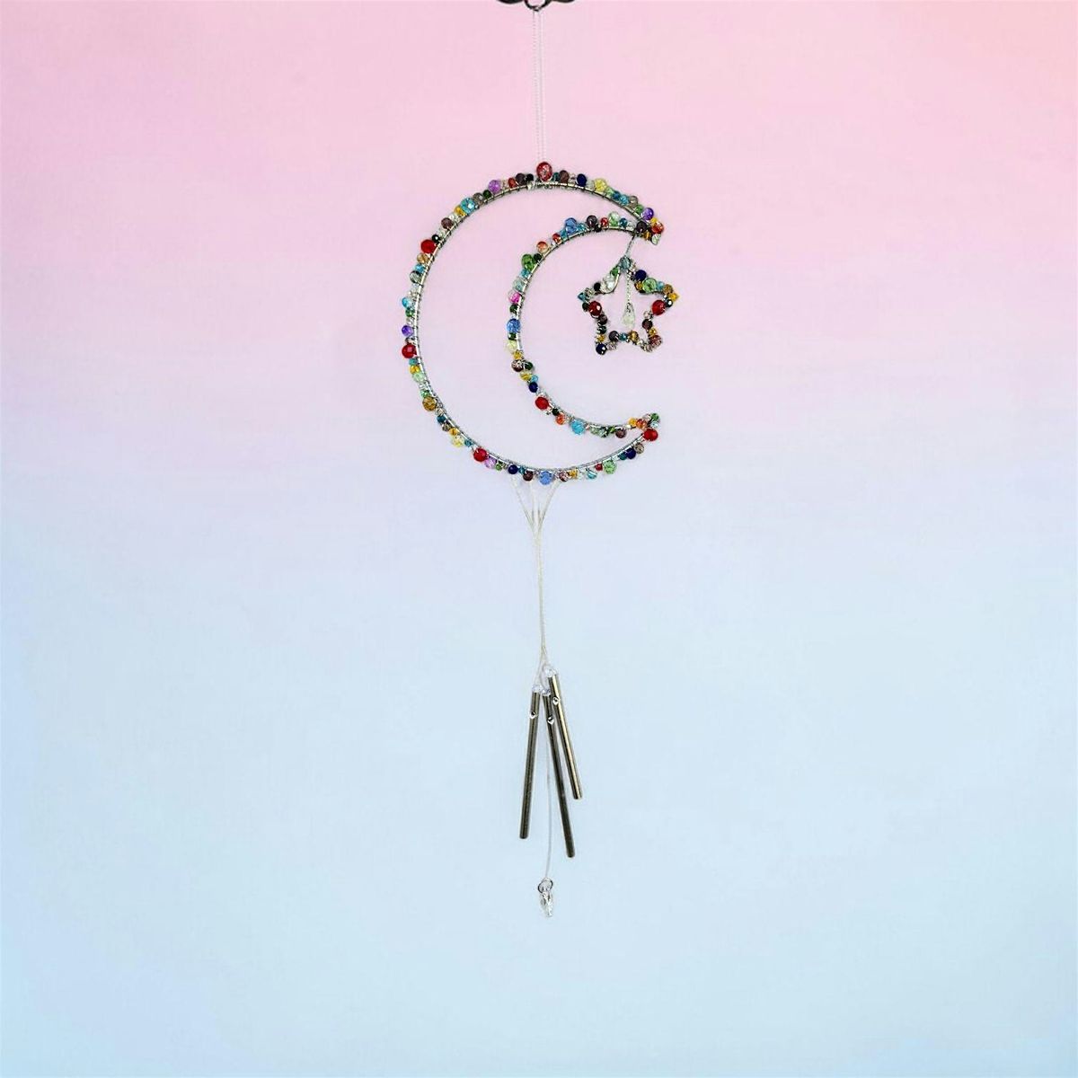 Create a beautiful sparkling wind chime in this fun and relaxing art class with Janie Lew! Choose either a round design or a whimsical moon shape, then decorate it with colorful crystals and beads to create your own one-of-a-kind piece.