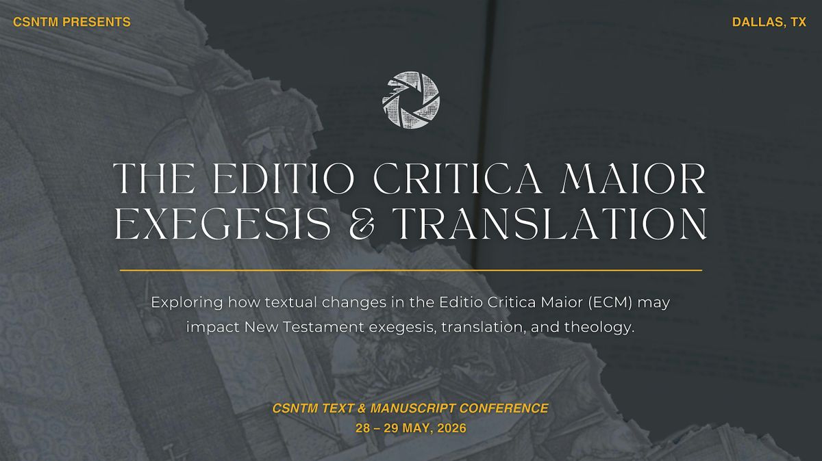 On 28–29 May 2026 (Thursday and Friday), the Center for the Study of New Testament Manuscripts will host a gathering of scholars in Plano, Texas (a suburb of Dallas). This will be the third meeting of The CSNTM Text & Manuscript Conference.