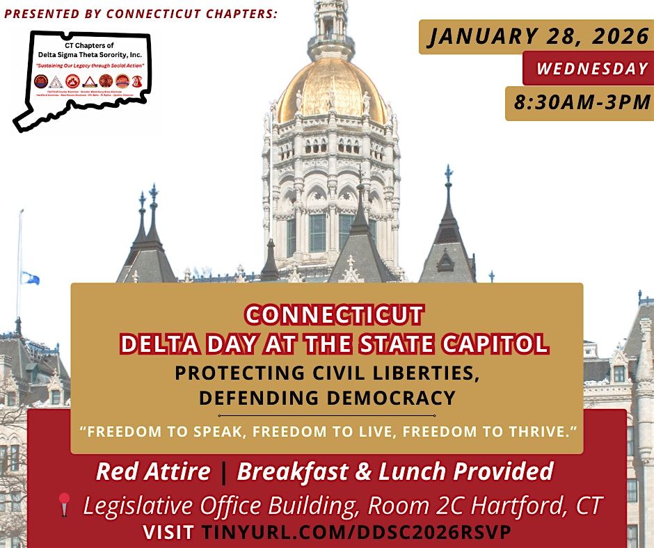 Members of Delta Sigma Theta Sorority, Incorporated, from across Connecticut will gather for CT Delta Day at the State Capitol, a focused day of civic education, dialogue, and connection in advance of the 2026 Connecticut Legislative Session.