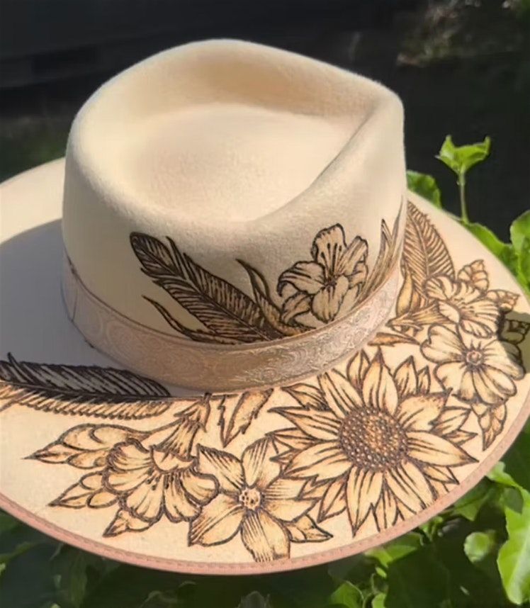 Hat burning is the art of creating custom, permanent designs on felt, wool, or suede hats using a heated tool - resulting in a one-of-a-kind piece you’ll treasure (and definitely show off 😉).