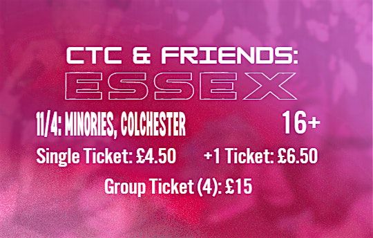 Fans of the UK underground, join us at The Minories on April 11, 2026 to tap into the next sensations! Catch a one-of-a-kind event in the heart of Colchester. The more people you bring, the better deal you get!