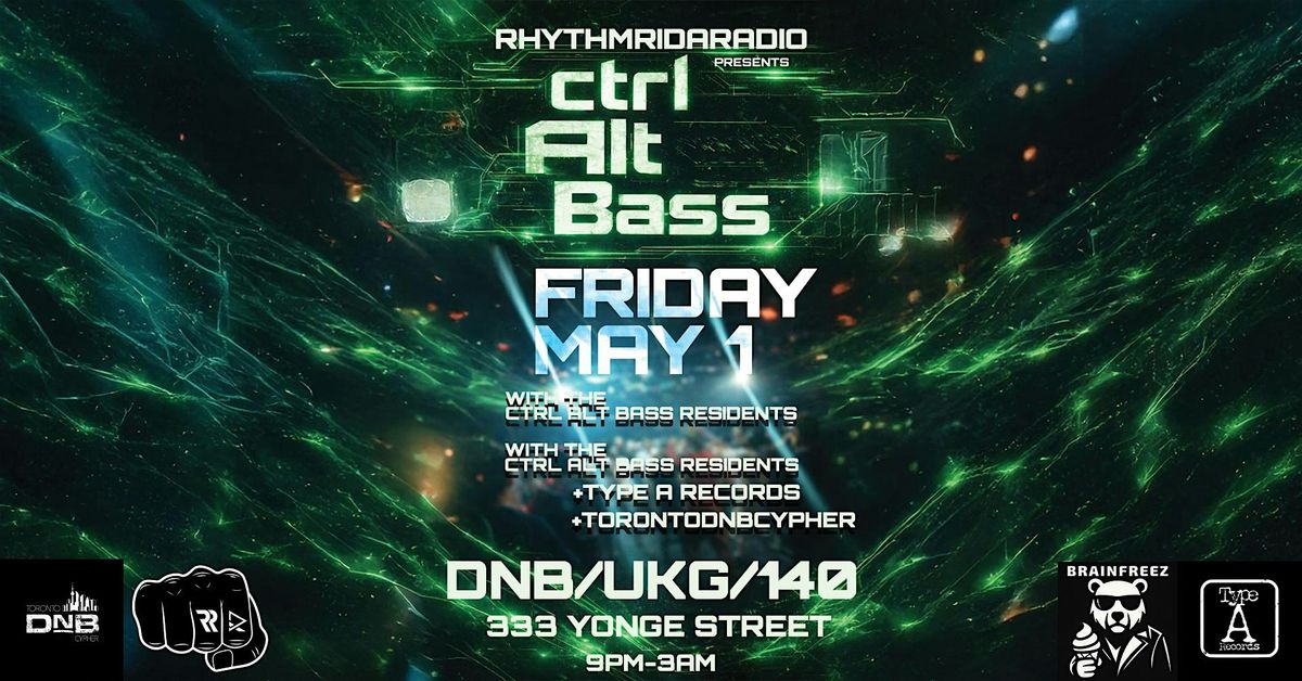 Toronto's bass scene needed a system reboot so we built one. CTRL ALT BASS returns May 1, 9PM–3AM with a special edition - live to air on rhythmridaradio (UK), bringing cutting edge drum & bass, dubstep, jungle, and UKG to the heart of Toronto , and world wide airwaves.