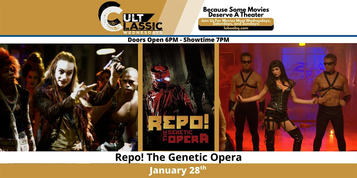 Some movies deserve more than a living room screen.Join us at the historic Lobo Theater for Cult Classic Wednesday, featuring Repo! The Genetic Opera—a darkly theatrical cult favorite that comes alive on the big screen, with powerful sound, striking visuals, and the shared energy of an audience experiencing it together.Part rock opera, part horror, Repo! has captivated fans with its over-the-top style, unforgettable songs, and delightfully twisted story—perfect for repeat viewings, sing-alongs, and cult cinema enthusiasts.Whether you’re seeing it for the first time or returning to it with fresh eyes, this is your chance to experience Repo! The Genetic Opera the way it was meant to be seen: in a theater, with a crowd, on a legendary screen.