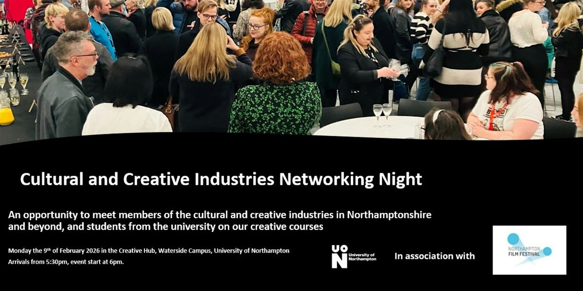 Join The University of Northampton and Northampton Film Festival for their annual Cultural and Creative Industries Networking Night. Network with the University, local creative and cultural professionals, and students, and visit our People Library. The event is on the first floor of The Creative Hub (step free access available). There will be a bar for people to be able to buy drinks.