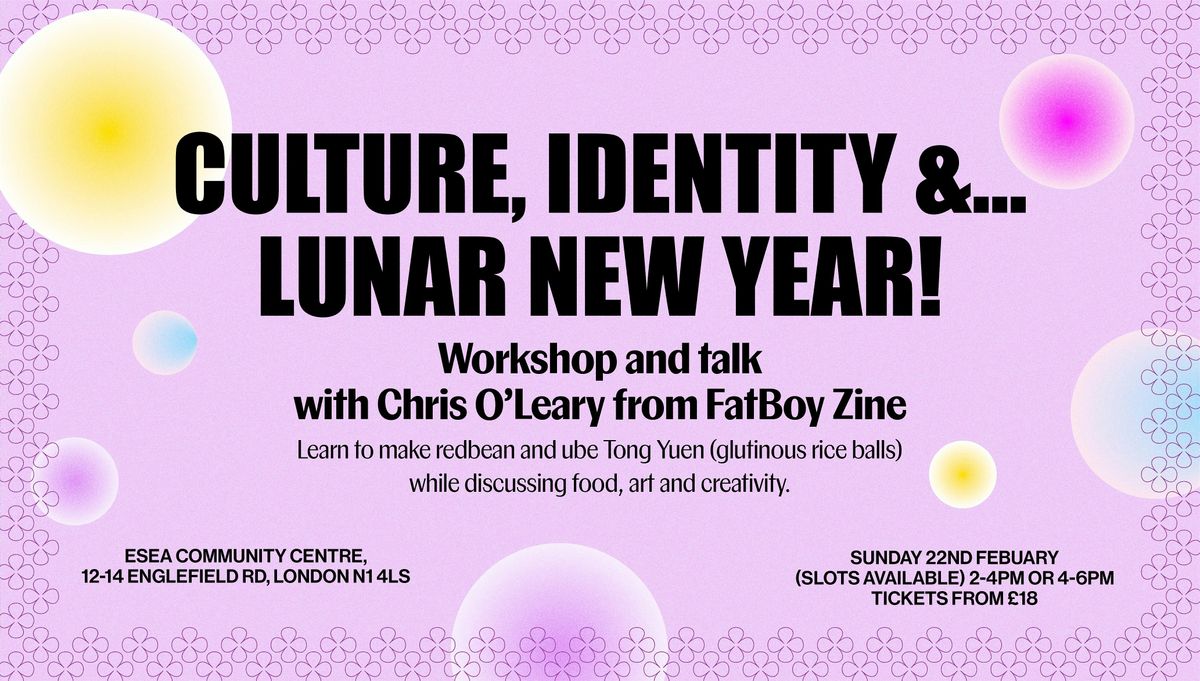 Join us for a Lunar New Year gathering centred around food, culture and conversation. Together we’ll make red bean and ube Tong Yuen while Beatrix Ong and Chris O’Leary, creator of FatBoy Zine, reflect on identity, creativity and food!