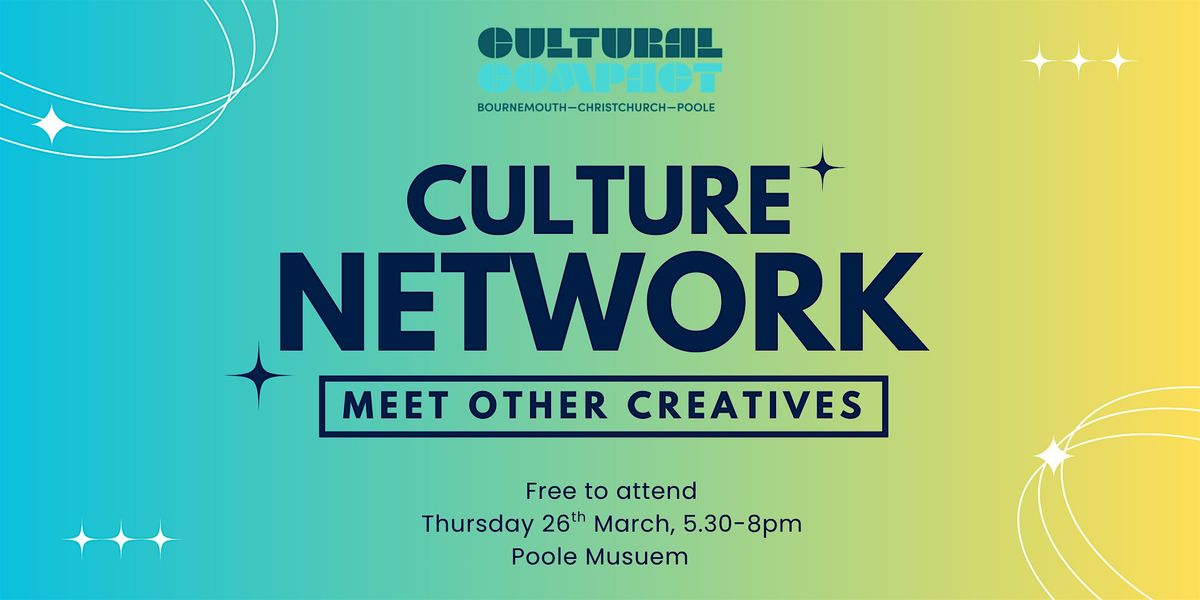 Hello! Come join us in person for our next Culture Network event , happening on Thursday 26th March. These events exist to connect, share ideas, and learn more about ongoing opportunities across the cultural landscape in Bournemouth, Christchurch, and Poole.