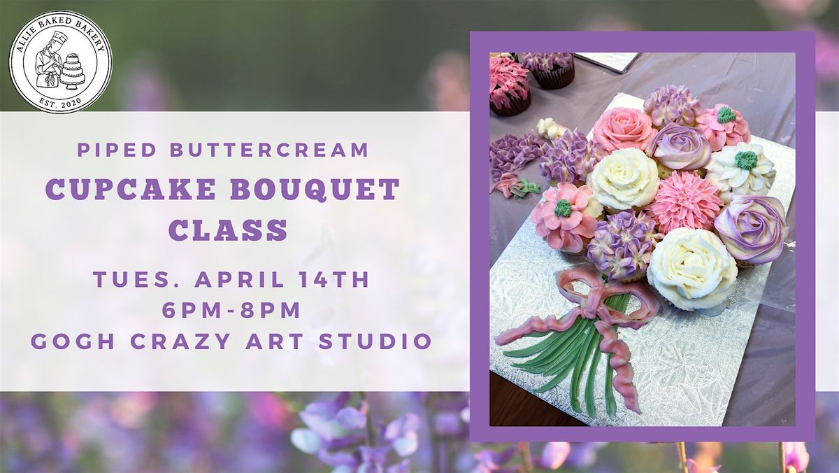 So excited for this NEW version of the floral cupcake class! Instead of creating the cupcake bouquet holder, we'll be arranging the cupcakes into a bouquet shape on a silver 9x13 cake drum. Students will pipe leaves to bring the bouqet to life, as well as pipe stems and a bow!