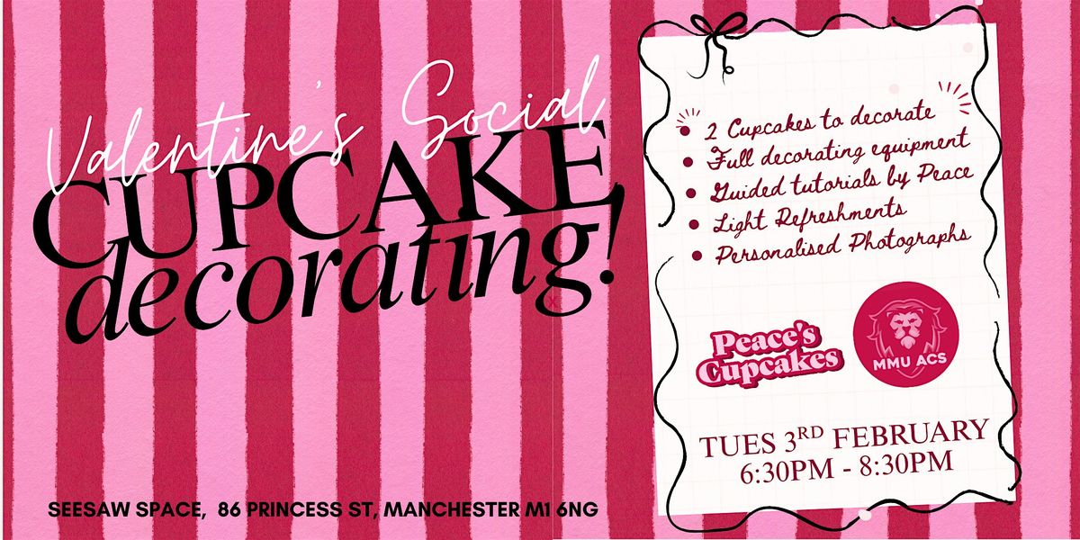 Get ready for a sweet, hands-on evening of creativity, cupcakes, and Valentine’s vibes! Join us for a fun cupcake decorating session hosted by Peace’s Cupcakes in collaboration with MMU ACS.