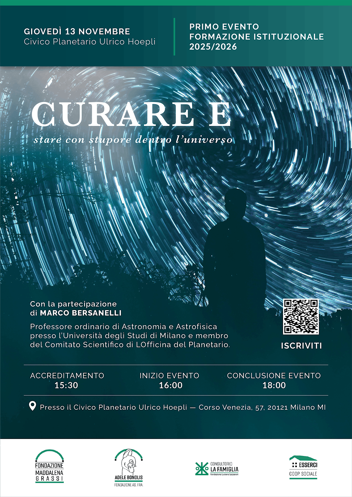 La Fondazione Maddalena Grassi vi invita al Planetario di Milano per un incontro con Marco Bersanelli, Professore di Astronomia e Astrofisica all’Università degli Studi di Milano e membro del Comitato Scientifico di LOfficina del Planetario. Un momento per riflettere sul senso della cura e lasciarsi sorprendere dalla bellezza e dall’infinito dell’universo.