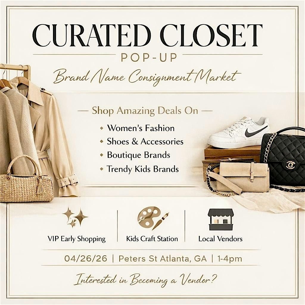 Join us for the Curated Closet Pop-Up — a brand-name consignment shopping event in Atlanta featuring gently loved fashion, shoes, and accessories.