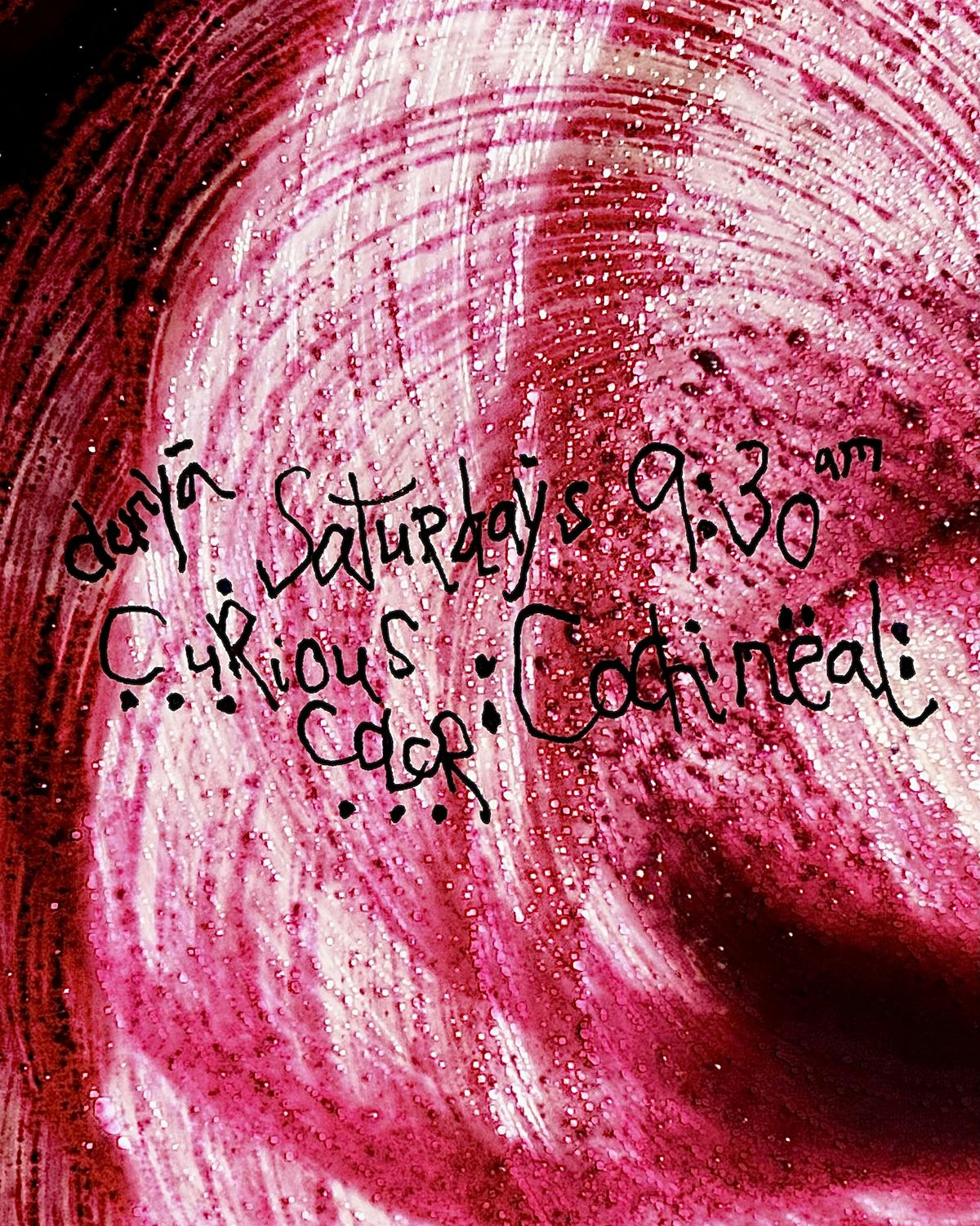 Cochineal, a canvas & all the necessary tools to make color will be provided. Bring your material to work on or share. No expectations are set or required.