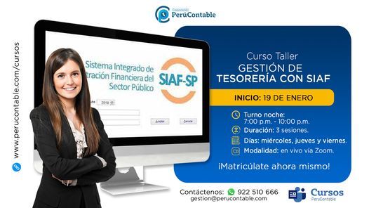 CURSO TALLER: "GESTIÓN DE TESORERÍA CON SIAF"? Fecha: Miércoles 19, jueves 20 y viernes 21 de enero.