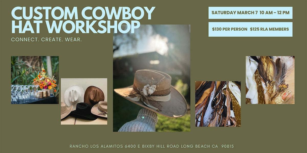 Join us for a fun, relaxed, hands-on hat customization experience with guided instruction throughout the morning. Most participants will complete their hat in about an hour, but the full two-hour window is yours to enjoy. We’ve built in extra time so you can work at your own pace, ask questions, customize details, and enjoy the creative process without feeling rushed. Bring a friend and enjoy a crafty morning at the Rancho, come away with a gorgeous one-of-kind hat, and a morning well-spent!