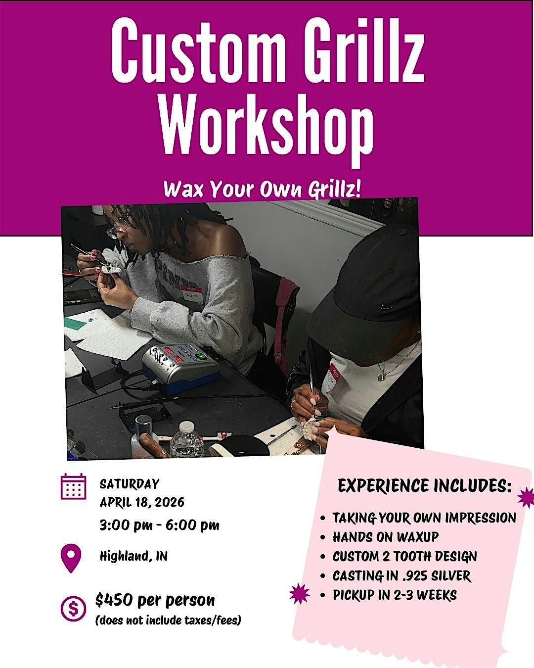 This is an interactive experience (not a grillz course) where you get to design, wax, and create your own two tooth custom grill from scratch. No prior experience is required.