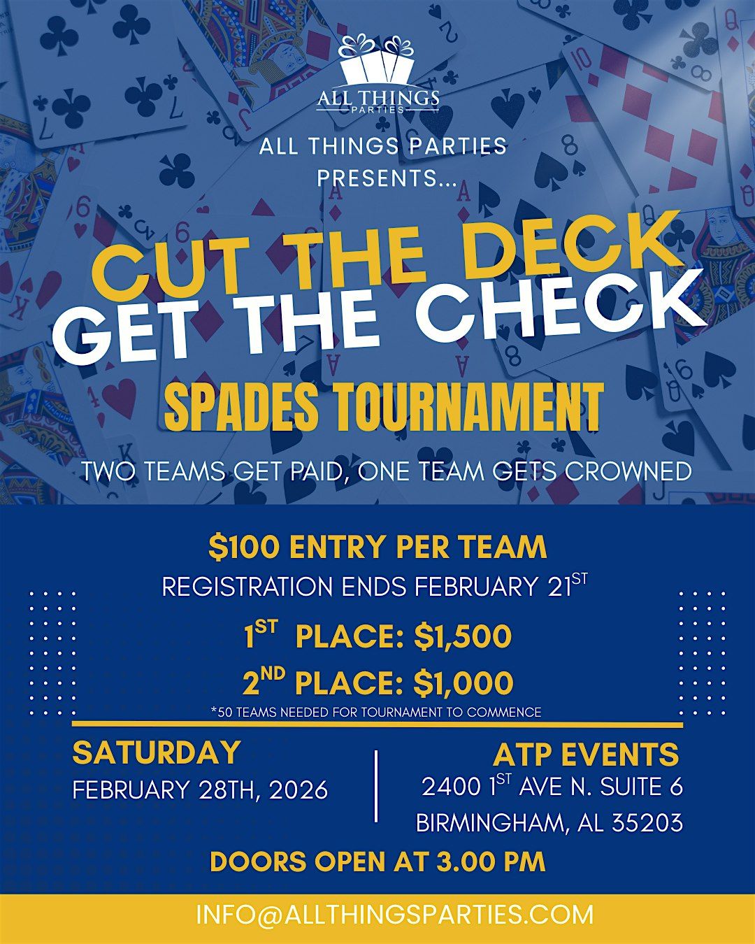 Ready to show off your Spades skills? Join us for the Cut the Deck, Get the Check tournament! It's an awesome chance to meet fellow card sharks in person, enjoy some friendly competition, and have a blast. Whether you're a pro or just love the game, this event's all about fun and good vibes. Don't miss out—shuffle up and deal!