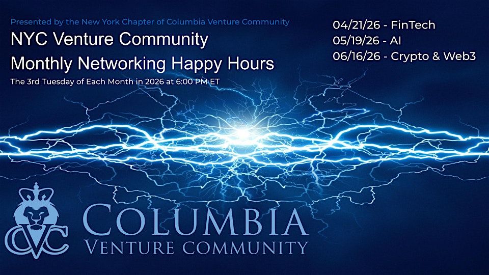 Calling all individuals interested in the venture space – entrepreneurs, founders, investors, venture capitalists – Join the NY Chapter of Columbia Venture Community for in-person networking happy hours on the 3rd Tuesday of each month in 2026!