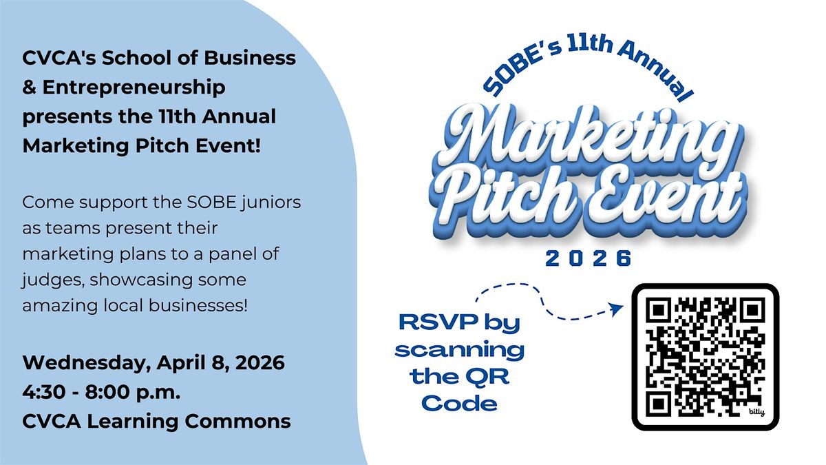 CVCA hosts the 11th Annual School of Business & Entrepreneurship Marketing Pitch Event '26. Over the past three months, 11 teams of junior marketing students have worked closely with local businesses to develop marketing campaigns that aim to move the needle for their represented businesses. At this event, the students will present their marketing campaigns in a public competition to the general public and a panel of judges.