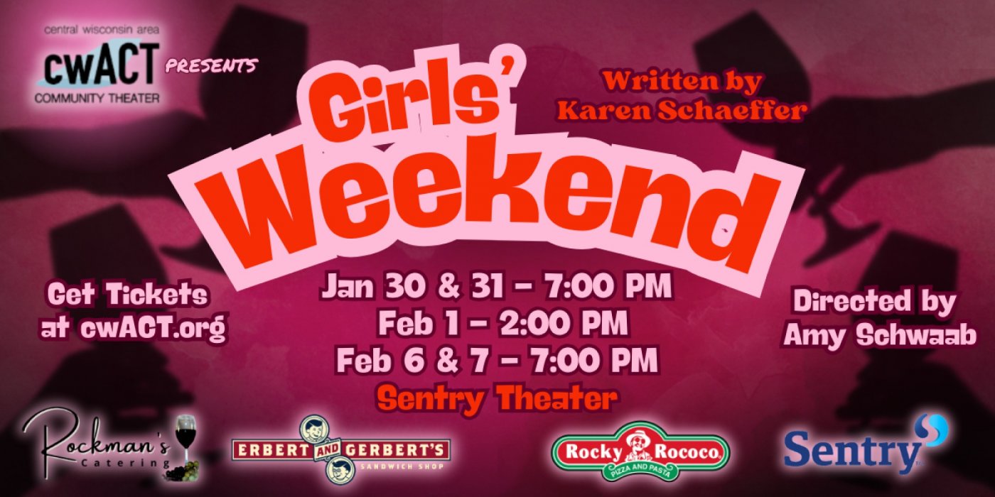 Central Wisconsin Area Community Theater (cwACT) presents Girls' Weekend, written by Karen Schaeffer.