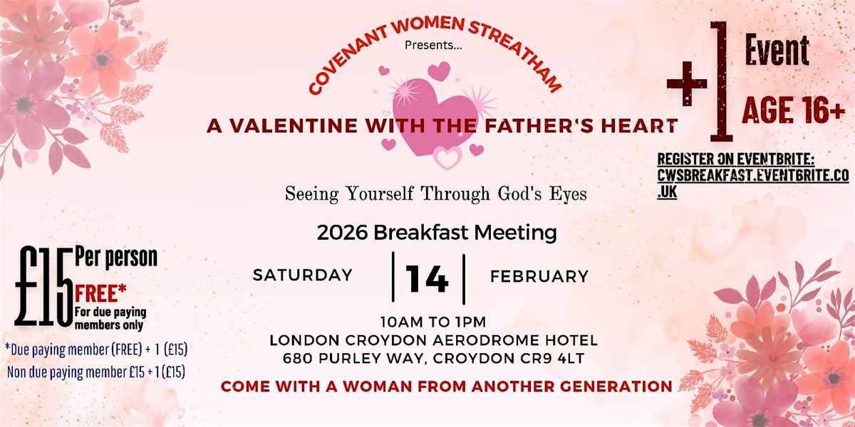 Covenant Women Streatham have a vision to build a community of impactful, kingdom focussed women, thriving and winning souls for Christ. We look forward to welcoming you to the London Croydon Aerodrome Hotel for a morning of food, community, and encouragement centred on the Christian faith. Learn from the journeys of women, celebrate the gifts and talents we have been blessed with as we understand how to love and be loved by our Heavenly Father. Don't miss out on this chance to be encouraged and encourage others over a delicious breakfast. Reserve your spot now and join us in repairing and restoring connections!