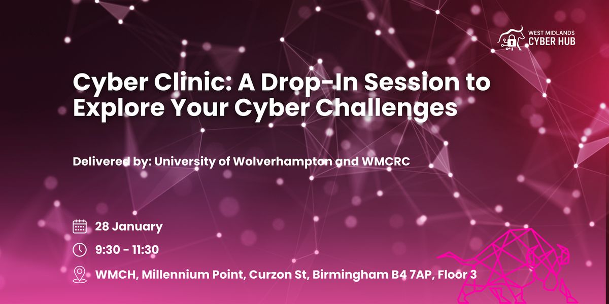 Come join us at Millennium Point on 28 January 2026, at 9:30 AM, for a drop-in session to explore your cyber challenges. Whether you're facing malware, phishing scams, or just want to learn more about cybersecurity, our experts are here to help!
