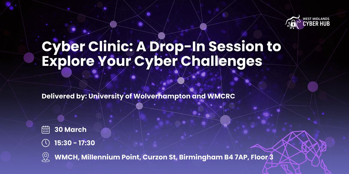 Join our Cyber Clinic for an informal, drop-in session where you can discuss your cyber challenges and get practical guidance on protecting yourself and your business. Whether you’re concerned about security risks, data protection, or online threats, this session offers expert advice and actionable tips to help you stay safe in today’s connected world.