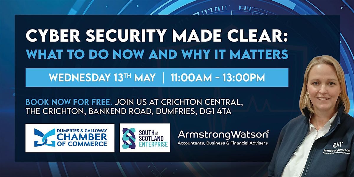 Join Dumfries Chamber of Commerce together with our new cyber security partner Armstrong Watson Cyber Security Solutions, for a focused session tailored for busy leaders and teams. A focused session tailored for busy leaders and teams. This session will help you understand what “good” looks like in cyber security and how to achieve it in your organisation. Leave empowered and equipped with practical takeaways your company can put to work straight away.