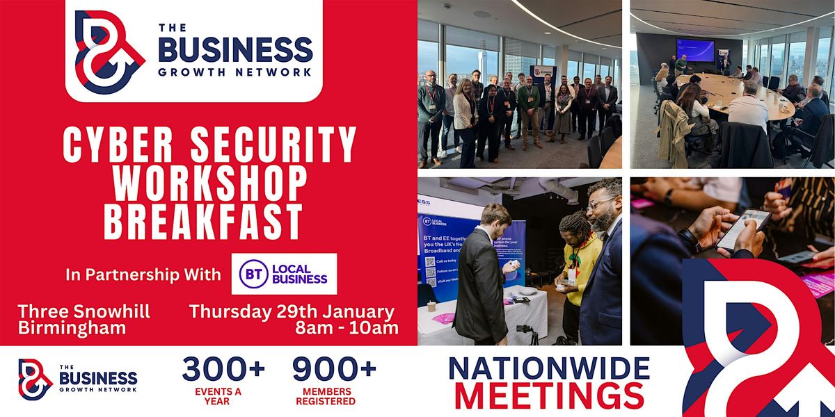 Join BT Local Business Birmingham to Hereford for a Cyber Security Workshop Breakfast, combining expert insight with a relaxed morning of networking over coffee and a cooked breakfast.