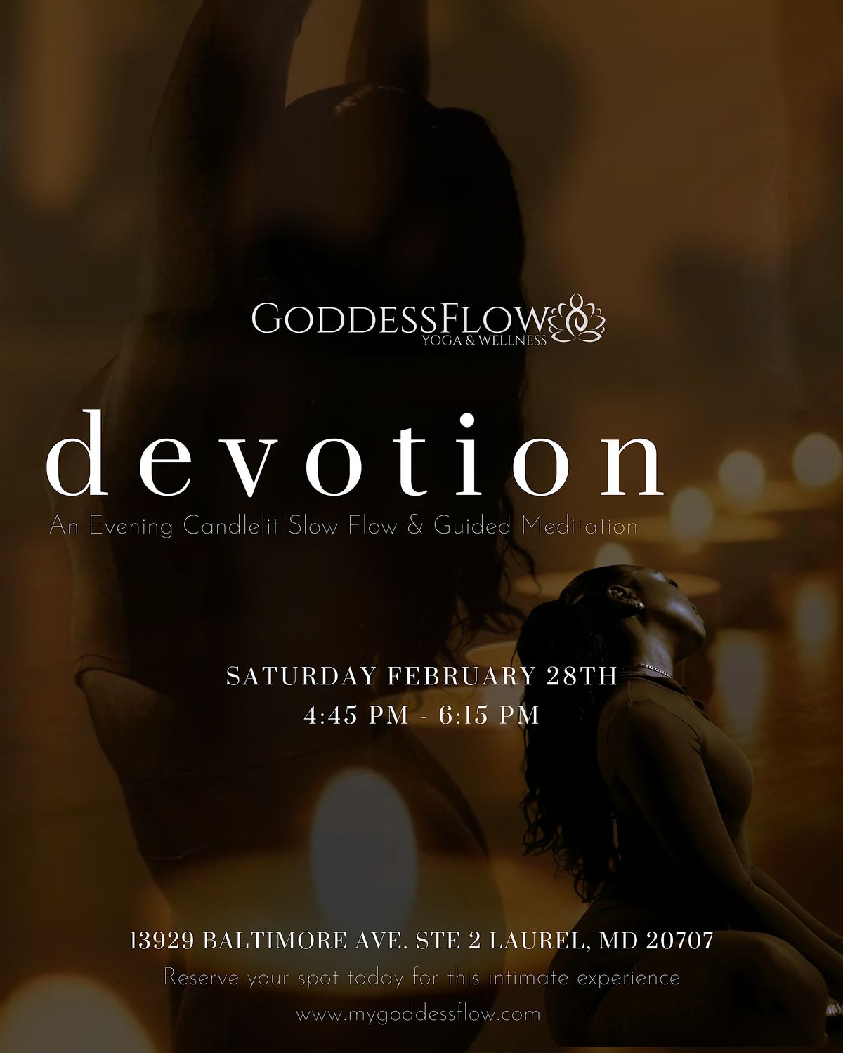 Tickets are also available on our website if you prefer to book directly: https://mygoddessflow.com/products/d-e-v-o-t-i-o-n-an-evening-candlelit-slow-flow-guided-meditation