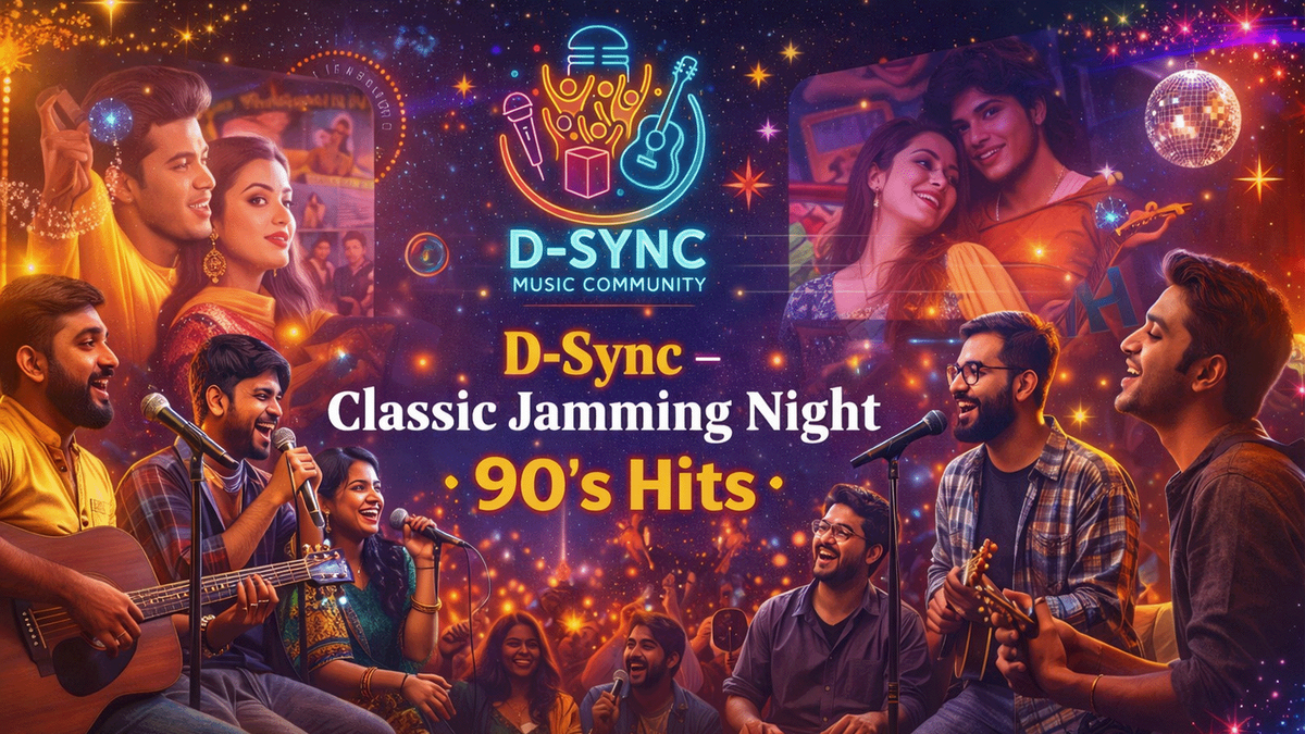 Relive the golden era of music at D-Sync Jamming Night – Classic 90’s Bollywood Edition, a celebration of timeless melodies that defined a generation. From soulful romantic hits to energetic indie pop anthems, experience the magic of the 90’s in a warm, welcoming, and interactive jamming environment. This is more than just a music event — it’s a community experience. Whether you’re a singer, musician, or simply someone who loves good music, you’ll have the chance to meet new people, socialize, and connect with like-minded souls who share your passion for music. Sing together, jam together, and create unforgettable moments with a community that feels like home.✨ Why you should join:Open for all music lovers — beginners, experienced musicians, and listeners alikeSing together and jam together on iconic 90’s Bollywood hitsMeet new people, make friends, and build musical connectionsBring your instrument and join the jam, or simply bring your positive vibeA safe, supportive, and judgment-free space to express yourselfExperience the joy of community, collaboration, and live musicYou don’t need to be a professional — just come with your love for music and openness to connect.Bring your instrument, bring your voice, or simply bring your vibe — and become part of the D-Sync community. 🎸✨