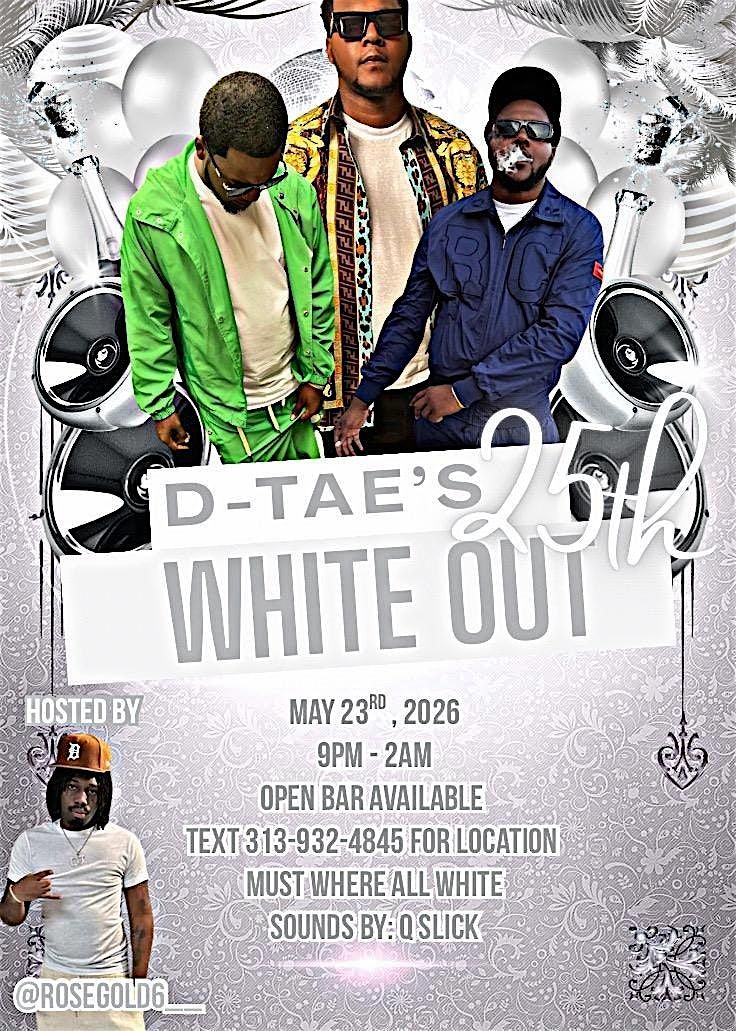 Get ready to vibe at D-tae's White Out—party all night in all white for epic fun and good times!About this Event
