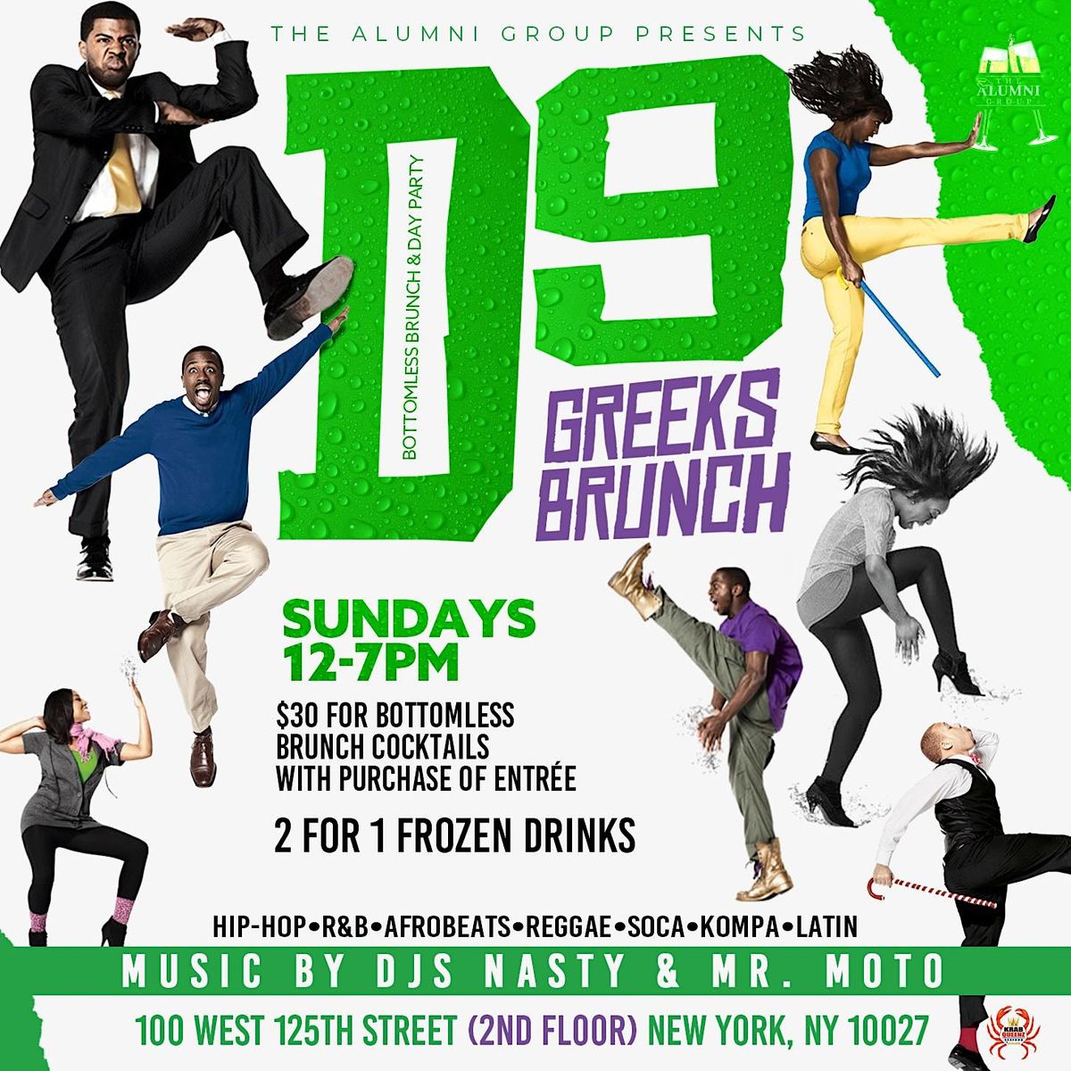 We party hard we stay up late but most of all we graduate! Whether you're undergrad or serving an alumni chapter come out and join The Alumni Group at D9 Greeks Brunch. Enjoy great food and drink specials and turn up to the sounds of NYC's dopest DJs. Don't be surprised if you see some Greeks strolling at this brunch.
