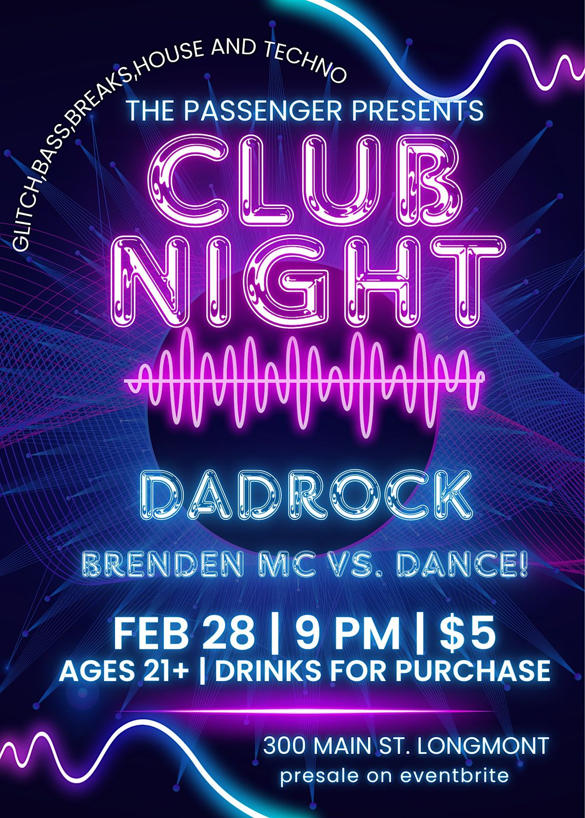 Join us at The Passenger for a club night packed with glitch, bass, breaks, house, and techno as Brenden MC and Dance! go back-to-back. These two have been rocking underground scenes across multiple states since the late ’90s—expect deep cuts, heavy grooves, and the occasional “wait… I know that sample 👀” moment.