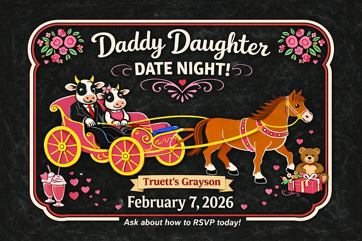 We are so excited to invite you to our Daddy Daughter Date Night at Truett’s Grayson — a magical evening designed to create unforgettable memories! ✨