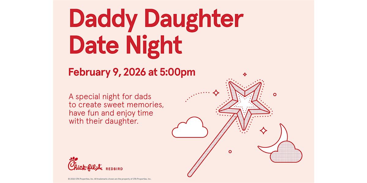 Welcome to Daddy Daughter Date Night! Get ready for a special evening filled with fun activities and quality time with your little one. Enjoy table side service, a photo booth, the Chick-fil-A Cow, and a keepsake photo with frame. Don't miss out on this opportunity to create lasting memories with your daughter. Limited reservations available.