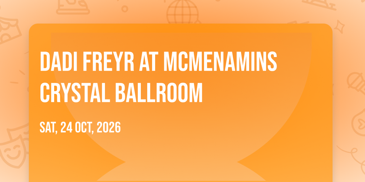 β¨ Experience the magic of Dadi Freyr at McMenamins Crystal Ballroom, where moments become memories that last a lifetime! ποΈ The iconic McMenamins Crystal Ballroom in Portland, OR sets the perfect stage for an unforgettable celebration on October 24th, 2026 at 08:00 PM. π It's been a curated experience that brings together the best of entertainment and innovation, creating an atmosphere of wonder and excitement. From the moment you arrive, you'll be immersed in a world where the ordinary transforms into the extraordinary. π Book early to secure your place in what promises to be an event that will be talked about for years to come!