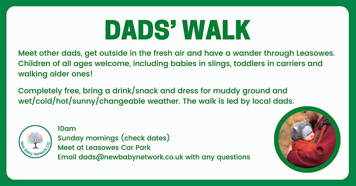 Meet other dads, get outside in the fresh air and have a wander at Leaswoes Park. Children of all ages welcome, including babies in slings, toddlers in carriers and walking older ones!