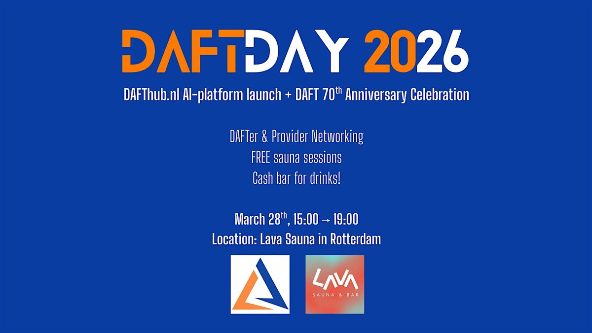 Get ready to celebrate the big reveal of DAFThub's brand new ai-powered platform! This in-person event is your chance to connect, explore, and dive into exciting features firsthand as we also celebrate "DAFTDay" - the 70th anniversary of the DAFT treaty being signed in.