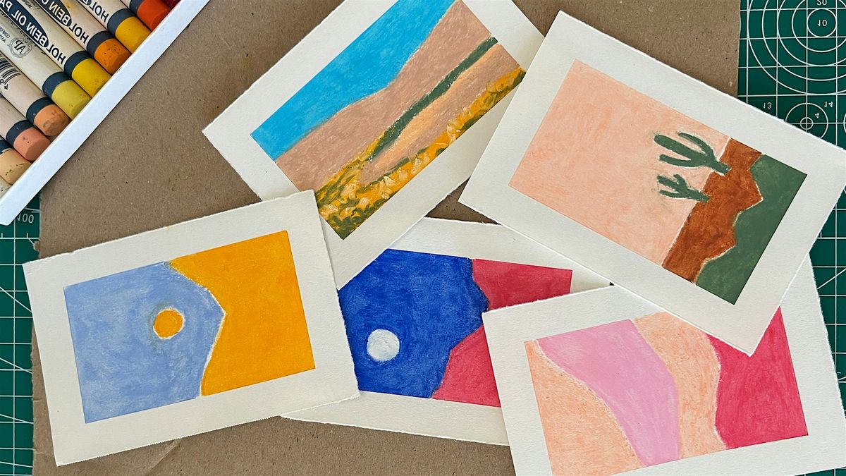 This workshop offers practical art skills and mindfulness exercises as a foundation for beginning a daily, reflective art practice with an artform which is both accessible and portable. You will take away a finished oil pastel landscape and learn the following techniques: