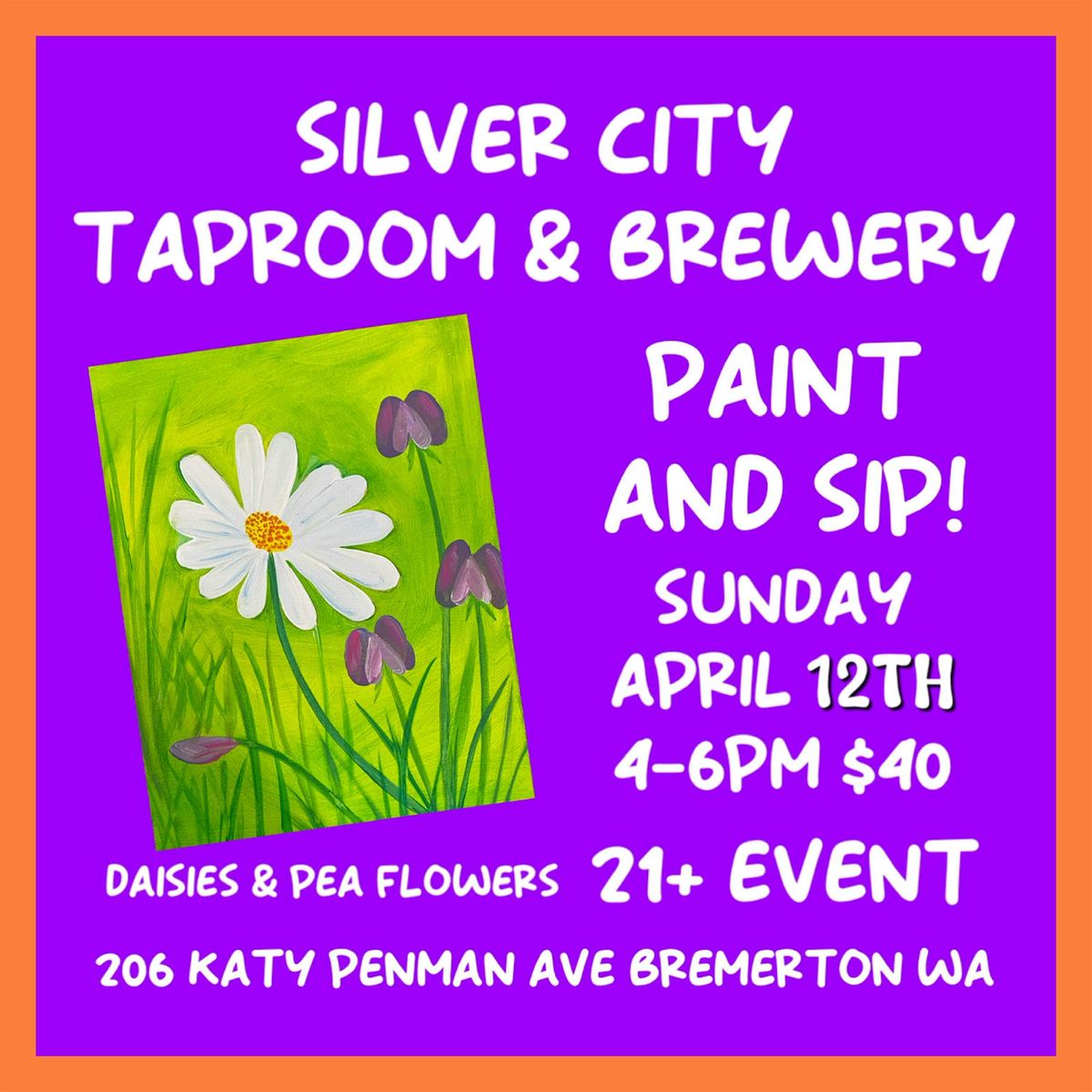 Spring is here! Learn to oaint some wild blooms and sample the newest brews from Silver City’s Bremerton Taproom. Supportive detailed instruction and supplies included! Leave with a new favorite skill!