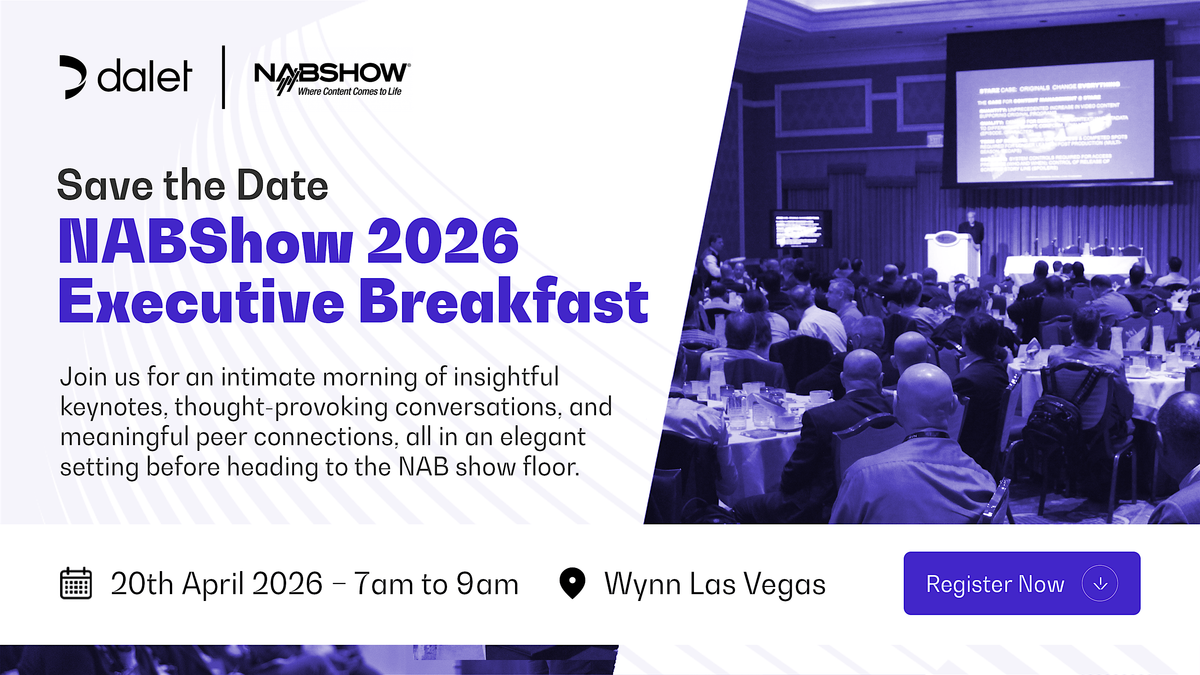 Join us in person for the Dalet NAB Executive Breakfast! It's a fantastic chance to connect with industry leaders, enjoy great conversations, and kickstart your day with energy and insights. Come network, share ideas, and discover what’s new in the world of media and technology. Don’t miss out on this casual yet impactful meet-up – see you there!