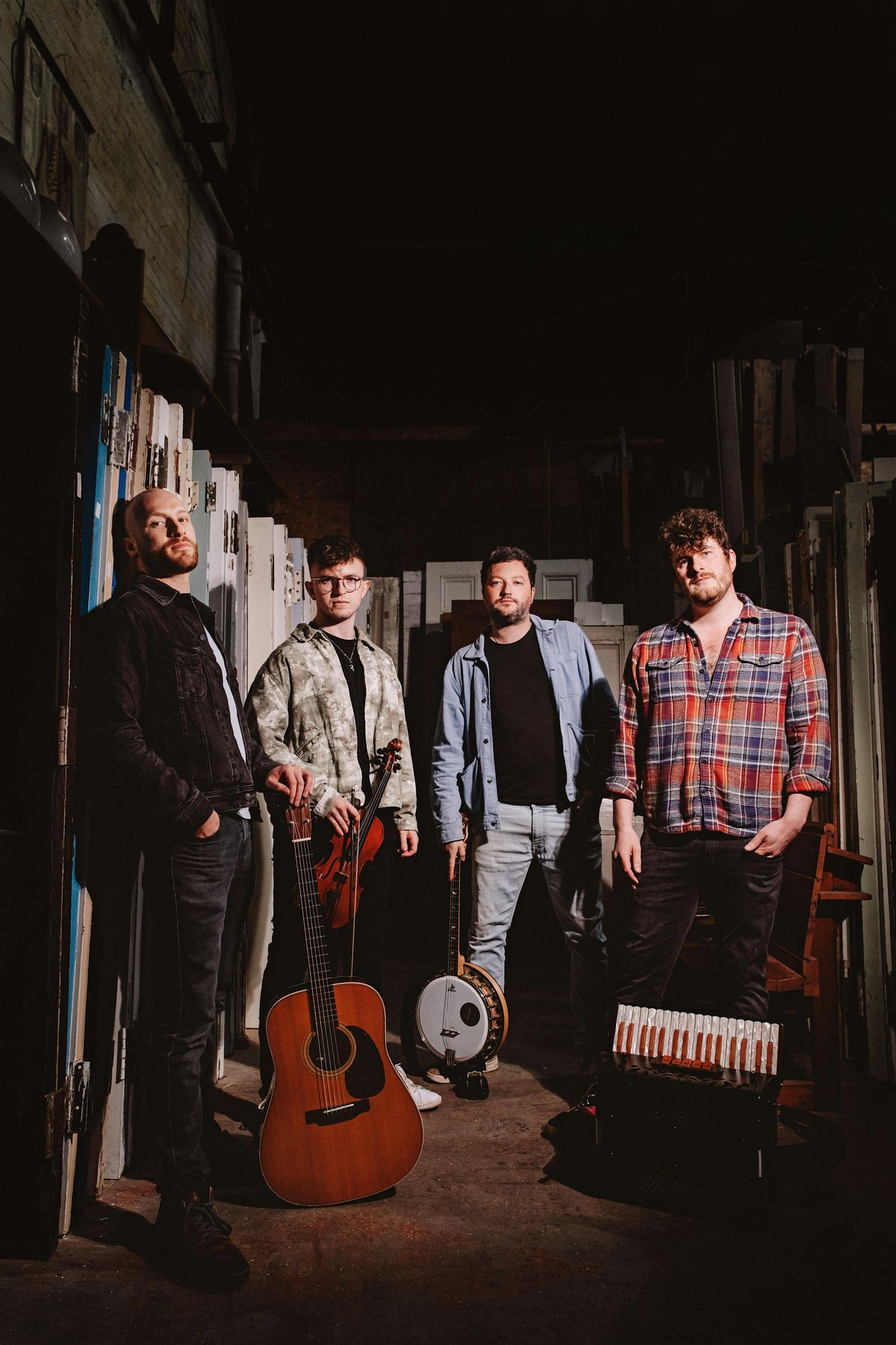 Forged in Scotland and Ireland's traditional music scene, but drawing on the music of the Balkans and North America, Dallahan take their listeners on a journey. Traversing styles and countries of the world in a dazzling live show, they create their own unique brand of World-folk delivered with stunning virtuosity. The lineup consists of Jack Badcock on guitar and vocals, Ciaran Ryan on banjo, mandolin and fiddle, Andrew Waite on accordion and Benedict Morris on fiddle.