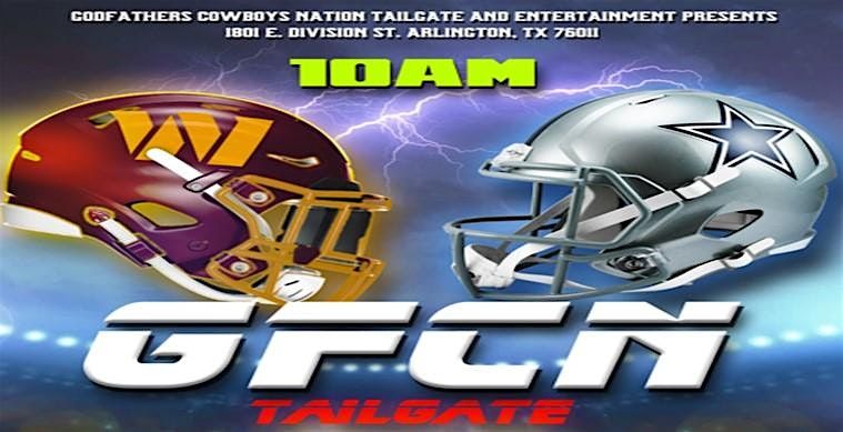 Join us for the ultimate tailgate at 1801 East Division Street, Arlington, TX, USA! It's going to be an epic showdown between the Dallas Cowboys and the Washington Commanders. Whether you are Cowboys Fans, Commanders Fans, or just Fans of Football, get ready for a day filled with food, drinks, and football frenzy. World Famous DJ Pharoah will set the stage for you to kick off the game day celebration in style. From mouthwatering BBQ to ice-cold brews and open bar, our tailgate has got you covered. A shuttle will be available to take you to the stadium or you can watch the game with us at the tailgate. So grab your friends, put on your team colors, and get ready to cheer on your favorite team. Don't miss out on this unforgettable event! Presale ends October 17th, after that tickets go up. Call or text 678-358-8454 for more details. Check out IG: GFCowboysnation.