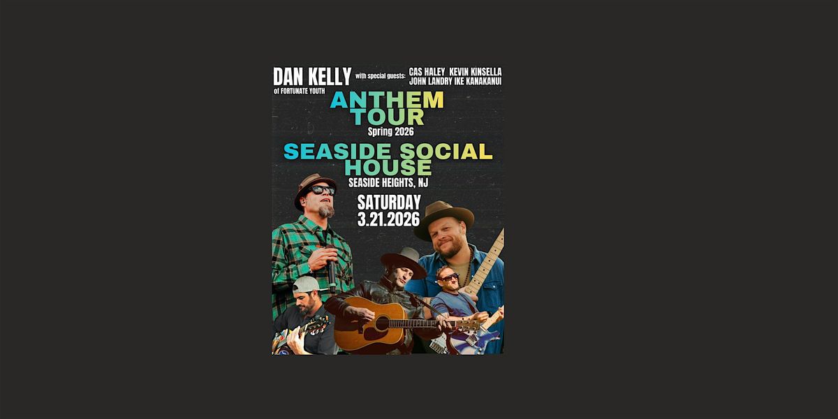The Anthem Tour brings Dan Kelly of Fortunate Youth to the stage in a stripped-back setting, offering songs and stories shaped by the roads traveled and the lessons gathered along the way. With special guests Cas Haley, Kevin Kinsella (of John Brown's Body), John Landry, and Ike Kanakanui; these shows invite you into a space where every note lands with a little more meaning.