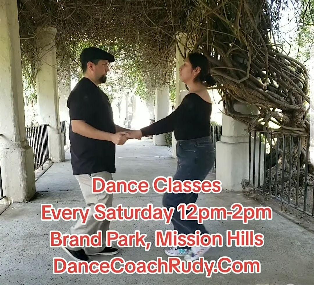 Join Dance Coach Rudy's School of Dance every Saturday from 12 pm-2 pm. Every Saturday, we will teach and rotate these different dance styles: Salsa, Bachata, Cumbia, Cha Cha Cha, Merengue, Swing, Rockabilly Jive, and Latin Hustle. The classes will be held at Brand Park in Mission Hills, located at 15174 San Fernando Mission Blvd, Mission Hills, CA 91345. Free parking on the sides of the park. Come burn calories, meet new friends, and have a good time dancing with us! Your first class is free! Before attending class, RSVP and confirm by texting Dance Coach Rudy at 818-792-3319. Find us on Instagram @Dance_Coach_Rudy and visit our website: DanceCoachRudy.Com. We can't wait to see you on the dance floor!