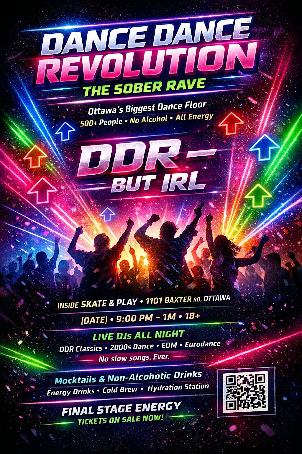 A massive 18+ sober rave with the biggest dance floor in the city, nonstop high-energy music, and 500+ people moving like it’s the final stage.
