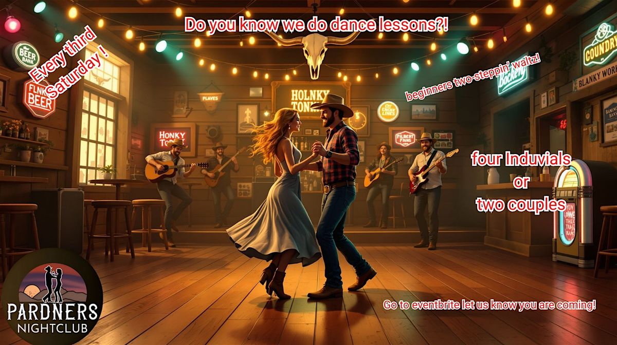 These dance lessons are for beginners two step and waltz! Two couples or four singles.