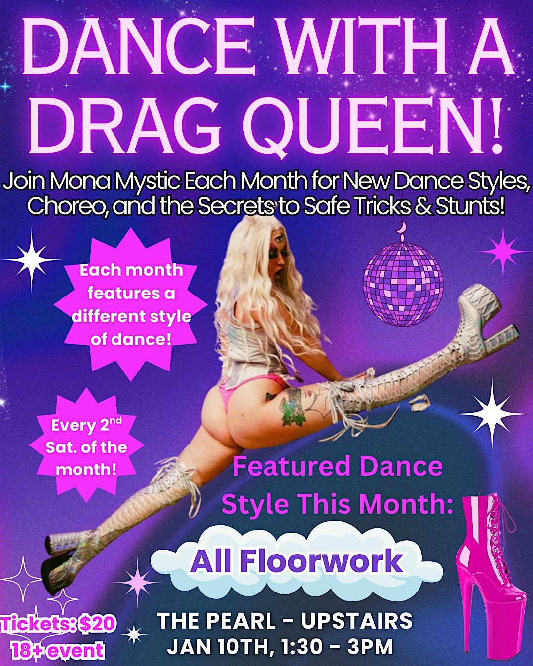 This dance class is for any / all levels and is all about dancing and having fun in a safe queer space!! This class is all floor work so please bring knee pads and feel free to wear whatever you feel comfortable in!