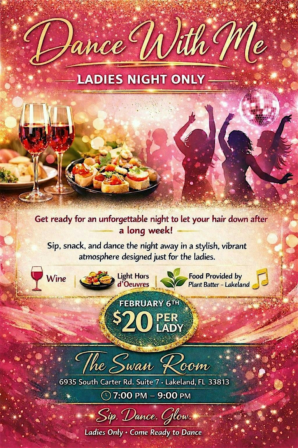 Welcome to Dance with Me - Ladies Night at The Swan Room! Get ready to groove and have a blast with your girlfriends on February 6, 2026 at 7:00 PM (Eastern Time). It's the perfect opportunity to let loose, learn a sexy routine, show off your dance moves, and create unforgettable memories. Don't miss out on this fabulous night of music, laughter, and fun. Grab your favorite outfit, put on your dancing shoes, and get ready to dance the night away!