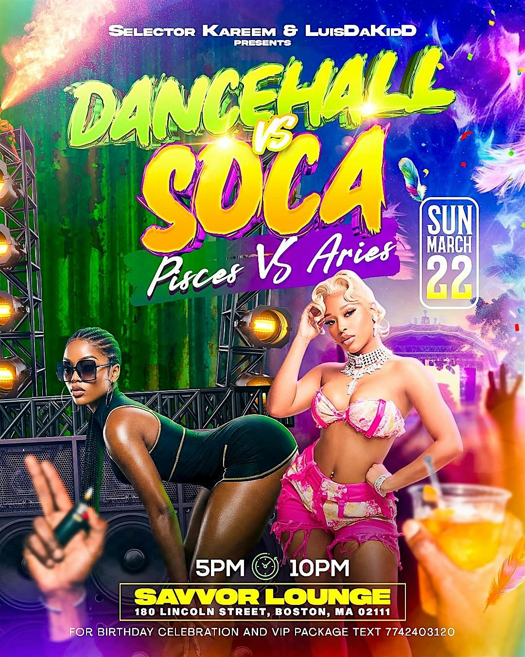 Get ready for an epic showdown! Dancehall and Soca collide live, as Pisces and Aries go head-to-head on the dance floor. This in person event promises vibes, energy, and nonstop beats that'll keep you moving all night long. Whether you’re team Pisces or team Aries, it's all about good vibes and great music. Don’t miss out on this wild night of culture, rhythm, and pure fun!